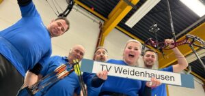 Das Recurve Liga-Team des TV1909 Weidenhausen e. V. ist nach vier Jahren zurück in der Hessenliga. Das Team aus Jeremy Achenbach, Sven Farkasch, Christian Rosin und Sebastian Tuisl hat sich den Meistertitel der Oberliga Nord in Herborn gesichert und sich damit wieder einen Platz in der Hessenliga gesichert.